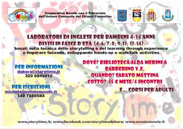A cura di Cooperativa Nuvole con il patrocinio dell'Unione Comunale del Chianti Fiorentino, partono i nuovi laboratori di inglese per bambini in età 4 - 14 anni.